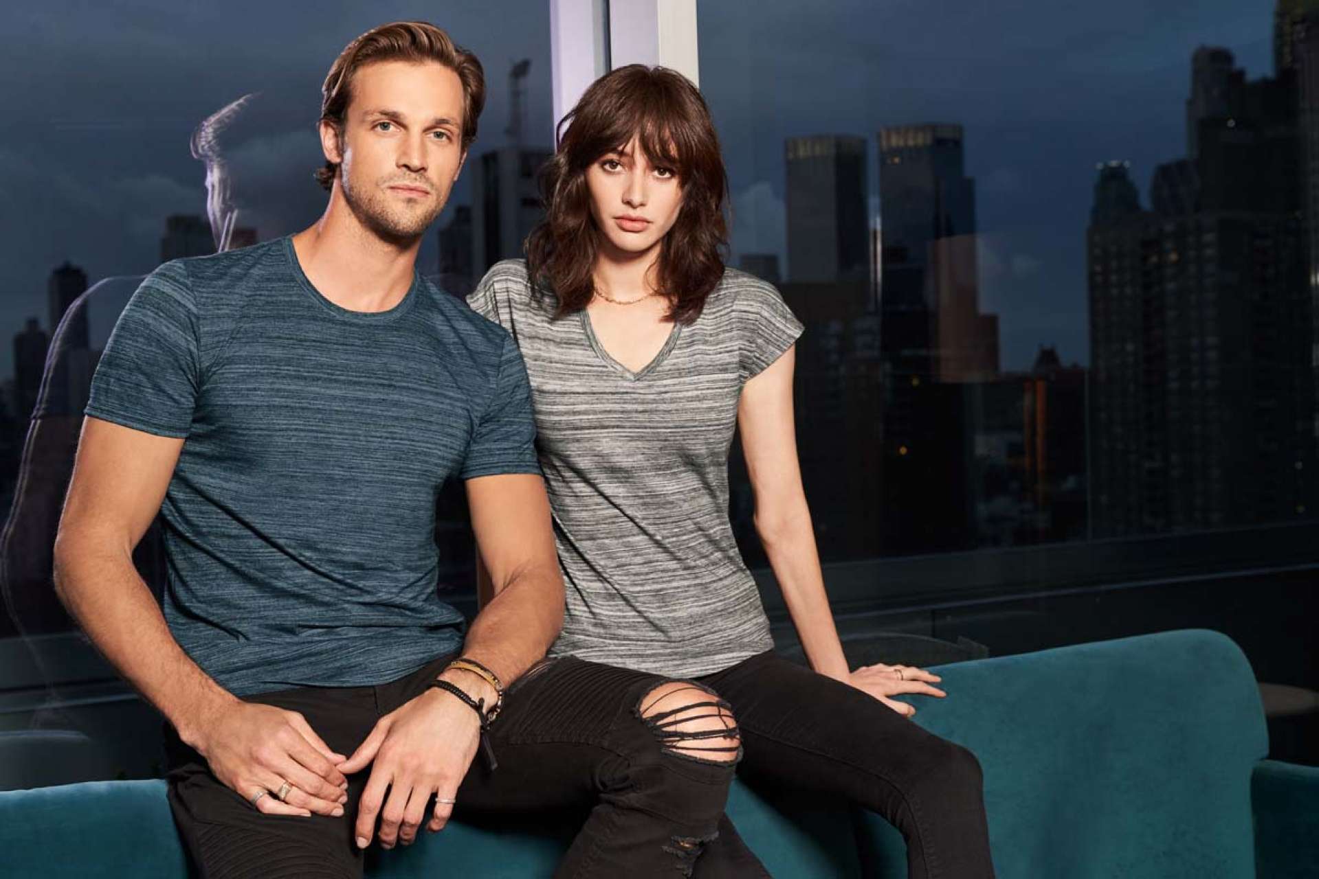 - Twin-needle dolman sleeve and curved bottom hem